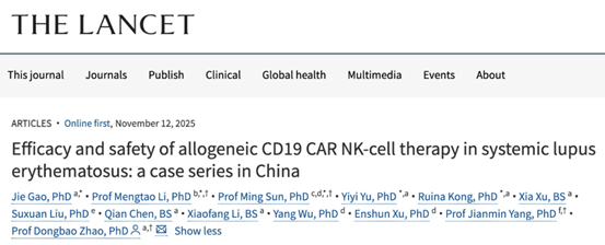 入选2025年“全球十大临床突破”:恩瑞恺诺通用型CAR-NK疗法为系统性红斑狼疮治疗带来革命性希望